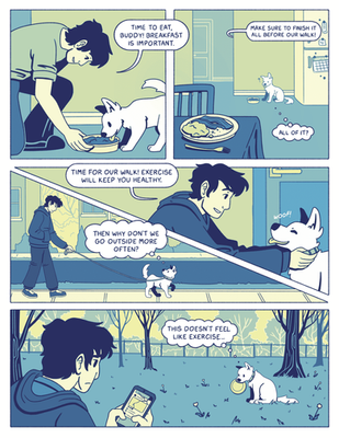 You take care of your dog but not yourself, and your dog notices. This three page comic depicts a sleep-deprived college student and his dog who has to remind him to take care of himself too.