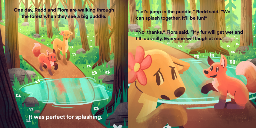 Follow Redd and Flora's adventure through the forest as Flora finds the courage to try something new.